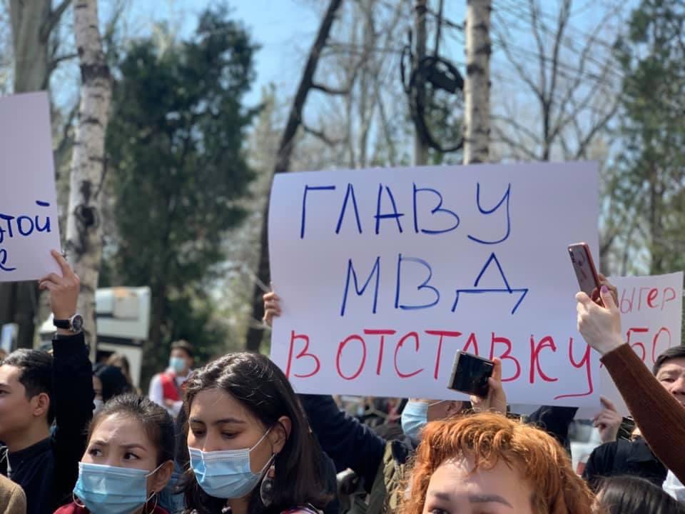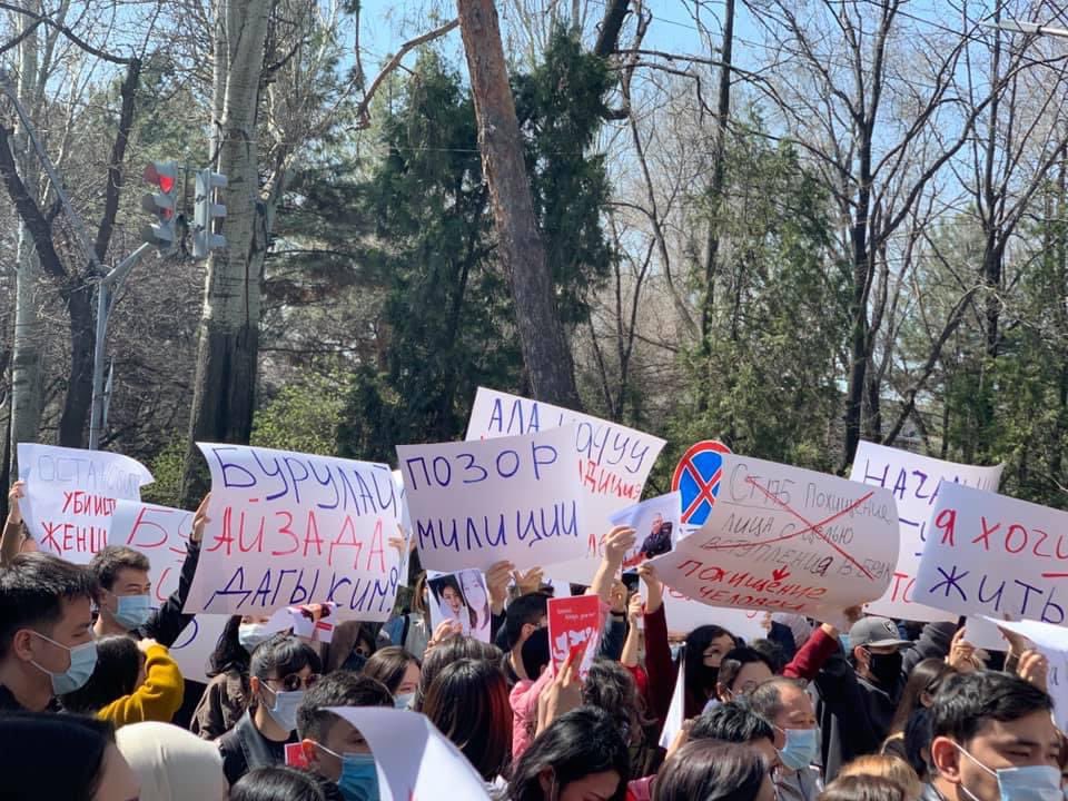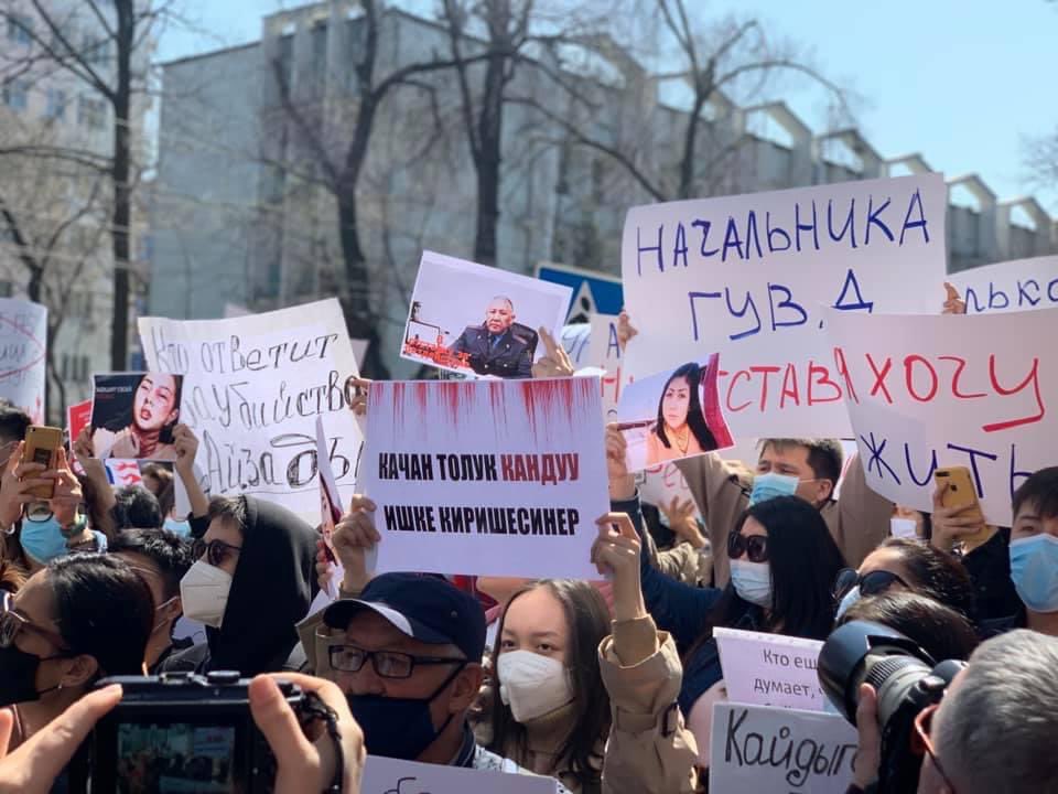 Кечээ, 7-апрелде соцтармакта жарандык активисттер ала качуунун курмандыгы болгон Айзада Канатбекованын өлүмүнө байланыштуу Ички иштер министринин отставкасын талап кылышып, ИИМдин алдына митингге чыгууну пландашкан. Митинг бүгүн саат 12:00дө башталган.