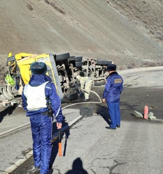 КЫЛМЫШ, КЫРСЫКТАР Бишкек-Ош жолунда оодарылган унаадан 20 тонна мунайзат төгүлүп, Кара-Балта суусуна куйган 23:48 21.11.2023