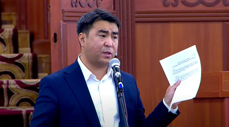 Депутат Улан Бакасов Жогорку Кеңештин жыйынында Тажикстандын кол салуусунан каза болгон Нарын облусунун жоокерлеринин тизмесин окуду. "Нарын жергес...