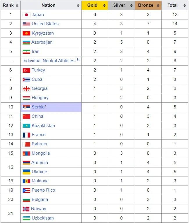 Белградда өткөн Дүйнө чемпиондугунда Кыргызстан күрөш боюнча 3-орунду ээледи. Куржунда жалпы 5 медаль бар: 3 алтын, 1 күмүш, 1 коло. Эркин күрөш бо...