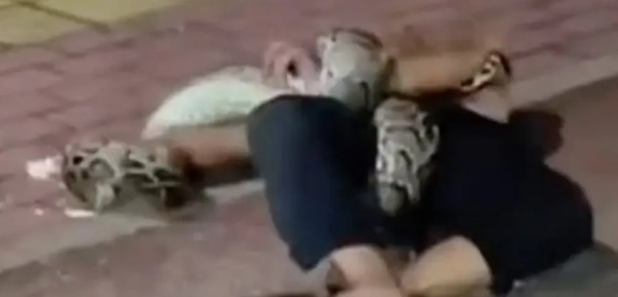 Кытайда мас адам питон менен күрөшүүнү чечип, бирок "жеңилип" калган. Жеңилген адам жыландын "кучагынан" куткаруучулардын жардамы менен чыгарылганын T...