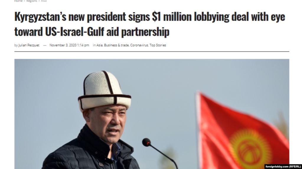 Президенттин милдетин аткаруучу Садыр Жапаров бийликке келгенине эки апта болгондон кийин өлкөнүн кызыкчылыгын лобби кылуу тууралуу келишимге кол койг...