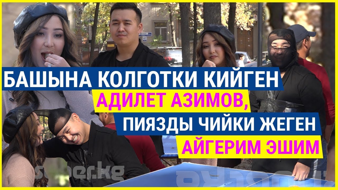 Башына колготки кийген Адилет Азимов, пиязды чийки жеген Айгерим Эшим