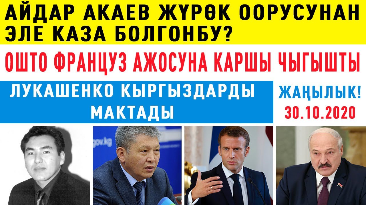 ЖАҢЫЛЫКТАР Айдар Акаев жүрөк оорусунан эле каза болгонбу? / Ошто француз ажосуна каршы чыгышты 09:32 30.10.2020